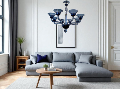 Murano Glass Contemporary Chandelier Grayish Blue – 8 Light